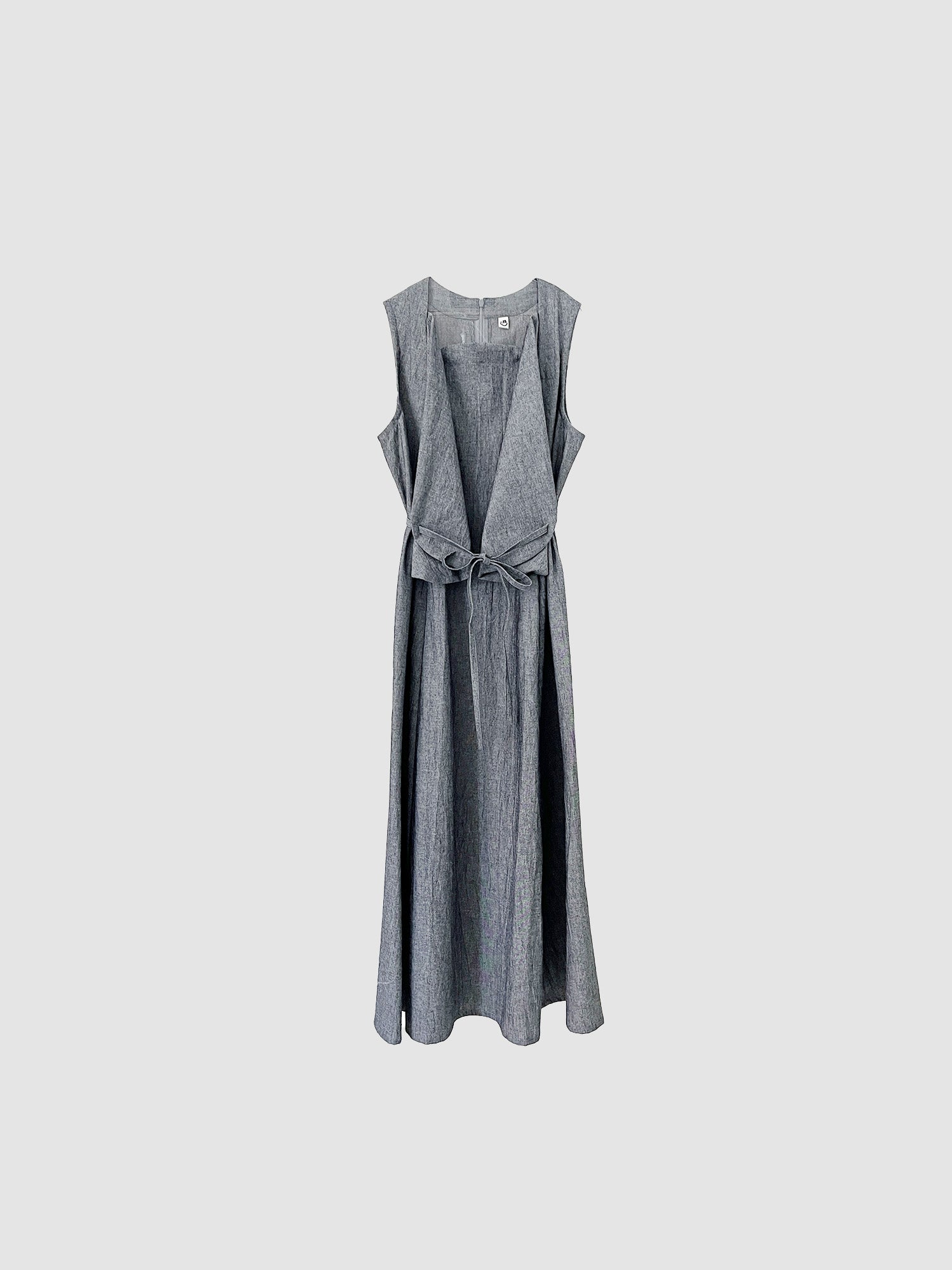 チューリップの花びらがかさなったようなカシュクールスタイルや襟があるようなカラースタイル、飾りの花びらを後ろで紐を結んだエプロンスタイルの3ウェイワンピース。TULIP EN MENSENが始まった頃から制作している。ジャンパースカートのように組み合わせたり、シーンや気分によって様々な着こなしが出来るます。