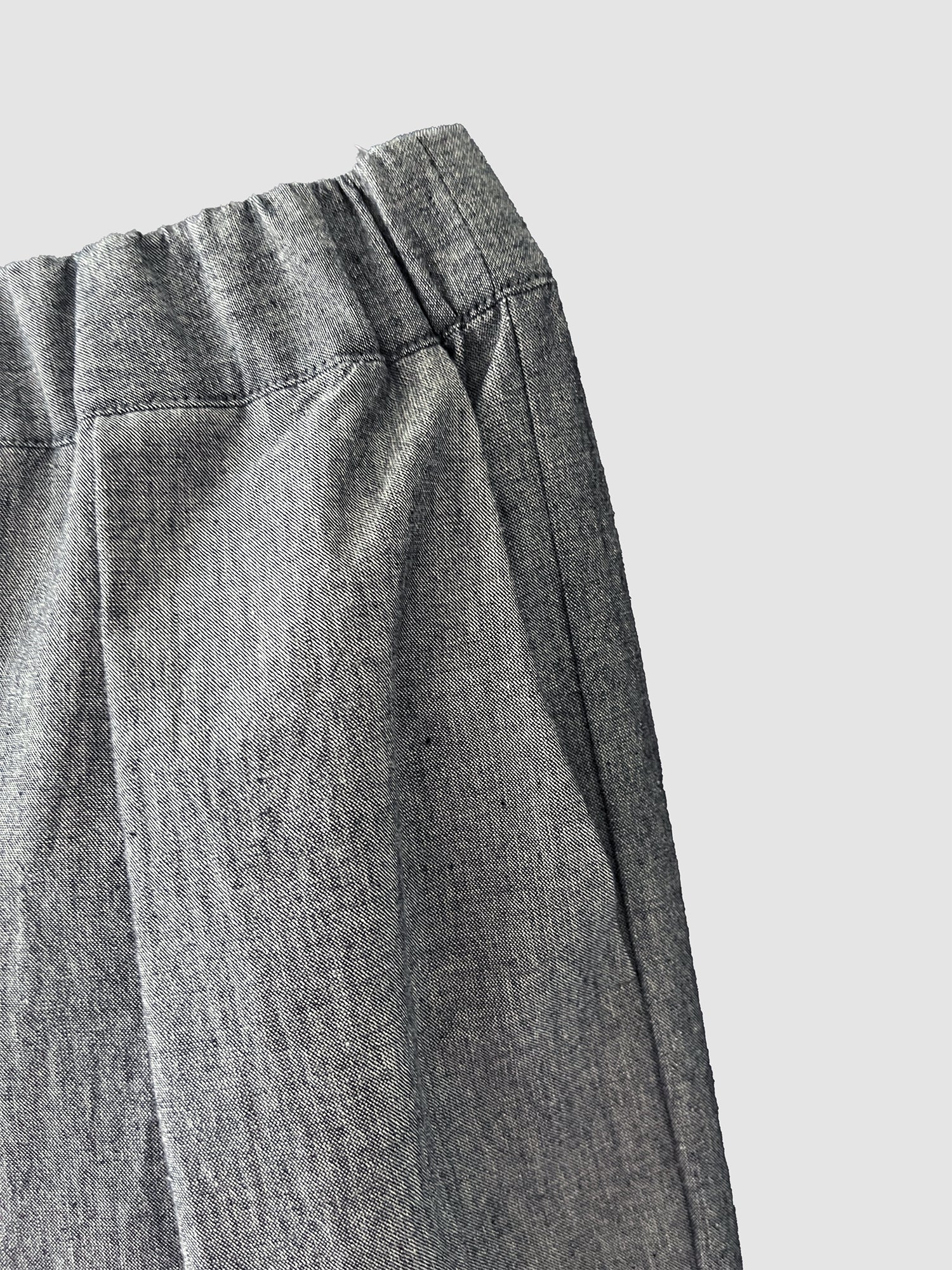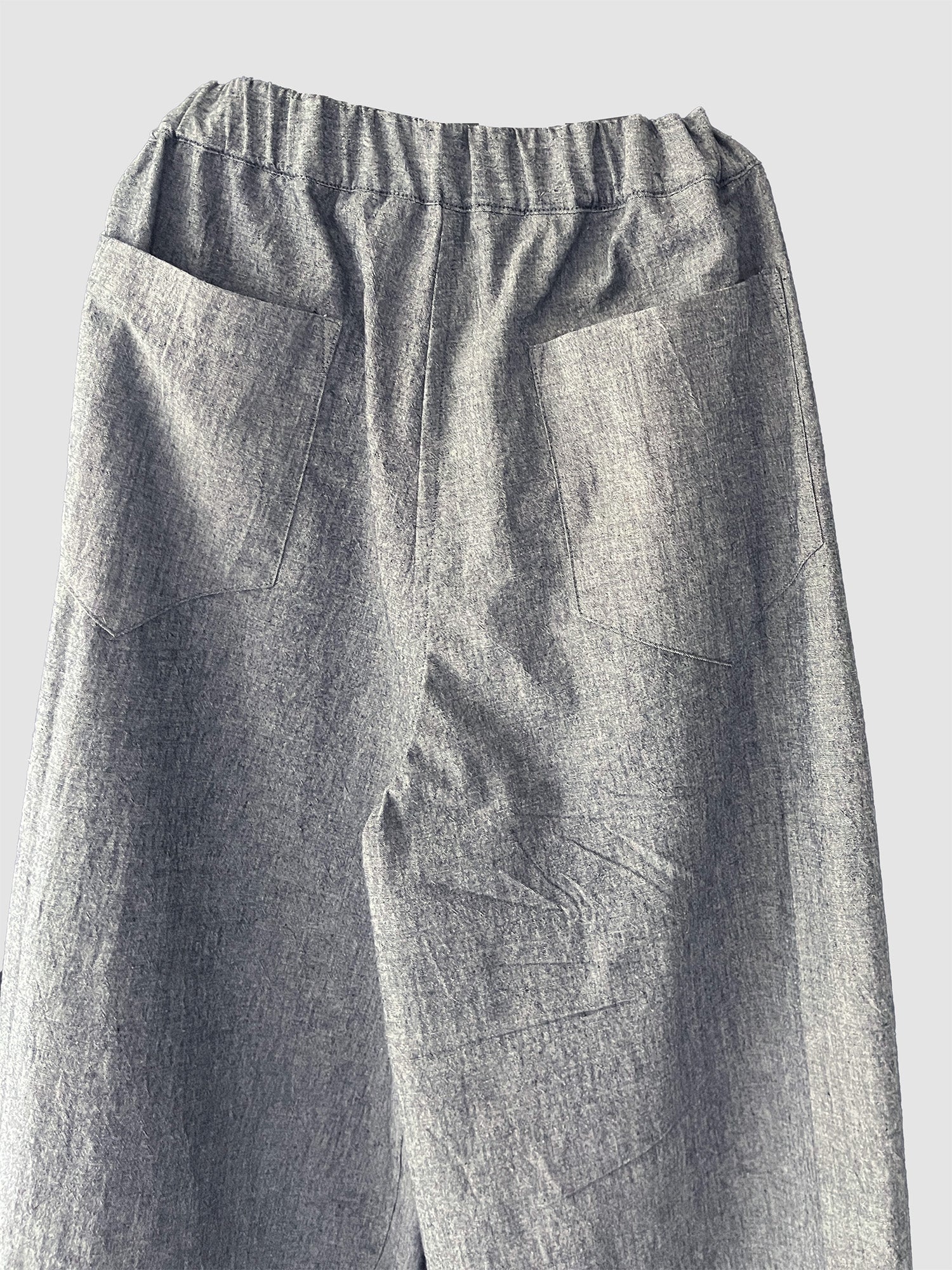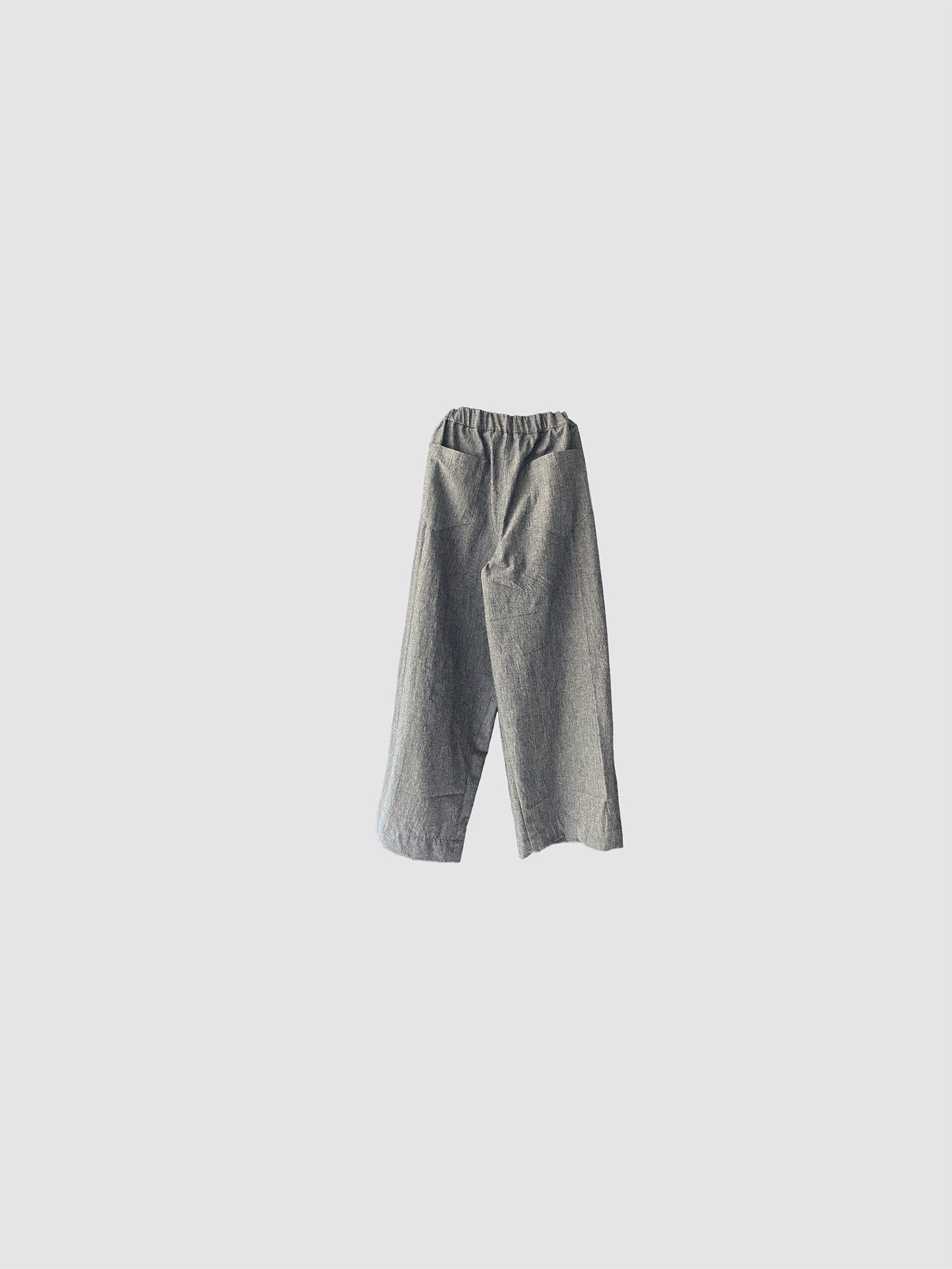 内側に向かって大きく入ったタックが縦に広がり寸胴のようなのユニセックスパンツ。ウェストにはドローコードを内蔵しています。サイドポケット2個、後ろポケット2個。